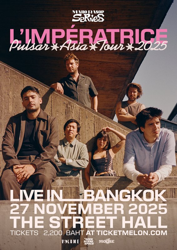 ศิลปินรายต่อไปที่จะมาร่วมสนุกใน Maho Rasop Series บินตรงจากฝรั่งเศส! ขอเสียงให้กับ L’Impératrice (แลม-ปิ-คา-ทคีร์ซ) อีกวงเฟรนช์ป๊อป นูดิสโก้ ที่แฟนๆ ถามถึงกันมามากที่สุด จัดให้แล้วนะ จาก Seen Scene Space! เลือกชุดเก่งไปเต้นกับเพลงเก๋ๆ ของพวกเขาได้ใน Maho Rasop Series by Seen Scene Space วันที่ 27 พ.ย. 2025 ที่ The Street Hall รัชดาฯ เปิดขายบัตร Pre-Sale 16 ส.ค. 68 นี้ที่ Ticketmelon