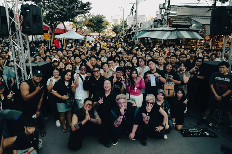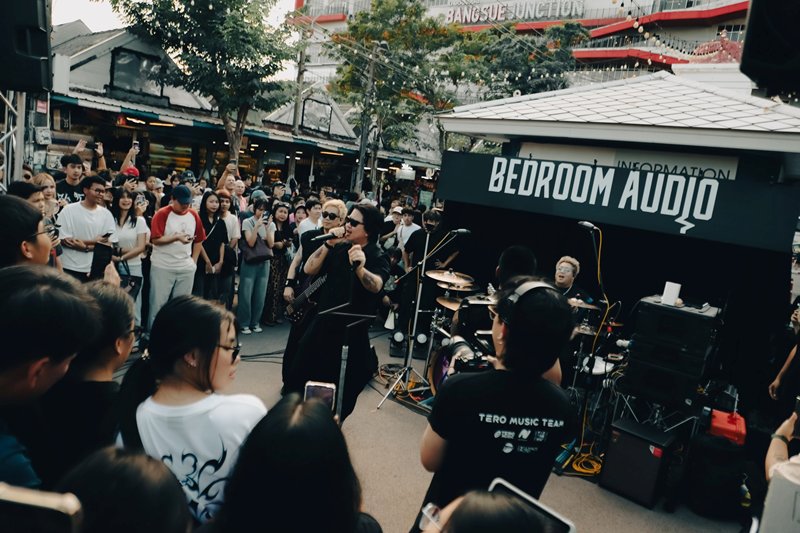 บรรยากาศยามบ่าย ณ ตลาดนัดจตุจักร คึกคักมาก แม้อากาศจะร้อนสักแค่ไหน แต่ก็ไม่เป็นอุปสรรค เมื่อวงร็อกเจ้าของเพลงฮิตติดหูอย่าง Bedroom Audio จัดมินิคอนเสิร์ตขอบคุณแฟนเพลงที่ผลักดันซิงเกิลล่าสุดให้ทะยานสู่หลักล้าน พร้อมส่งมอบความสุขเป็นของขวัญชิ้นพิเศษก่อนโบกมือลาปี 2568 อย่างเป็นทางการ